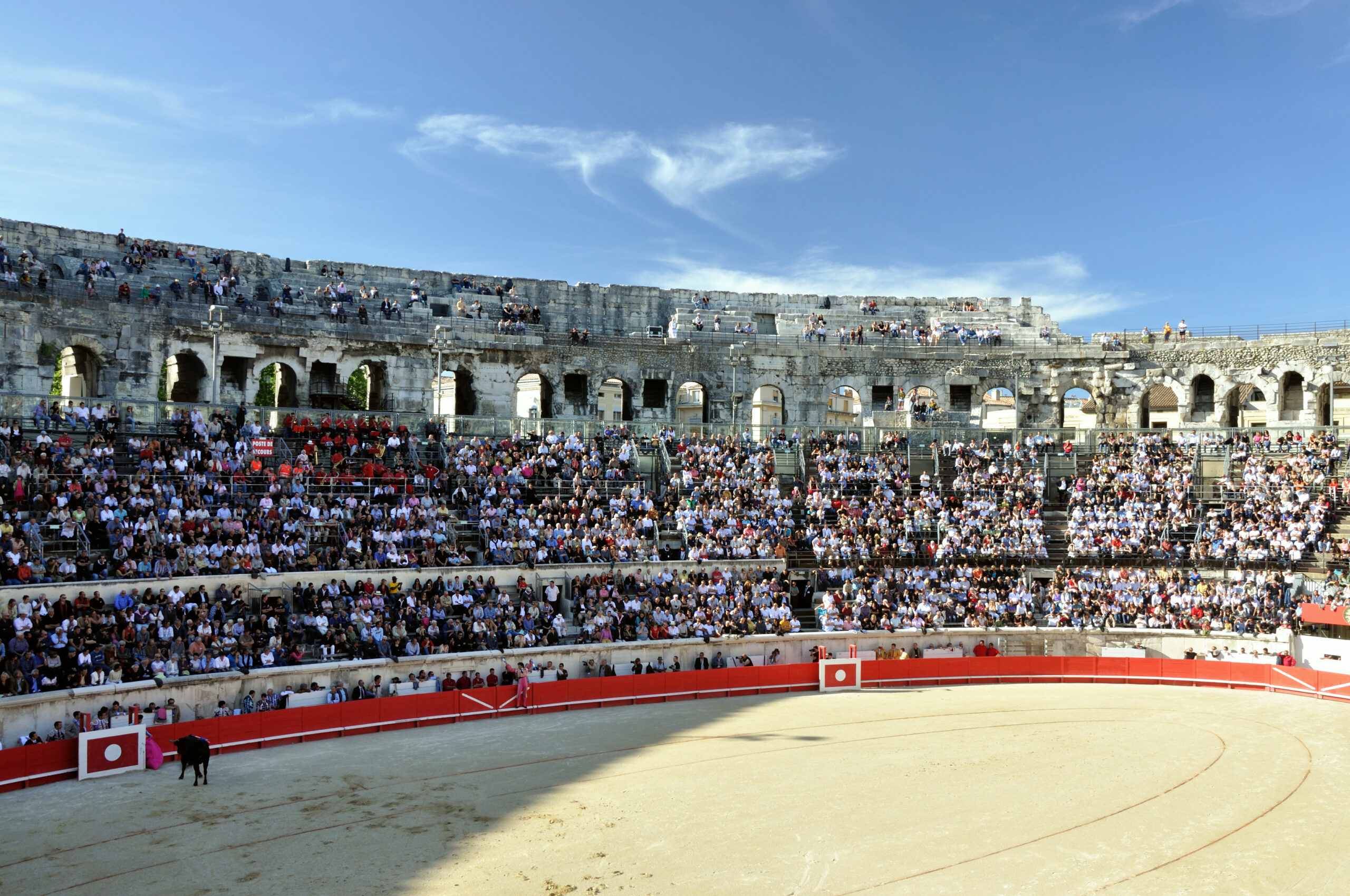 Construites à la fin du 1er siècle après J.C, les Arènes de Nîmes sont l’amphithéâtre le mieux conservé de l’époque romaine. Ses proportions harmonieuses (133 mètres de long sur 101 mètres de hauteur) permettent d’accueillir jusqu’à 24 000 spectateurs. Les combats de gladiateurs ont désormais laissé place aux toreros, sportifs et artistes qui se produisent chaque année dans ce lieu chargé d’histoire.